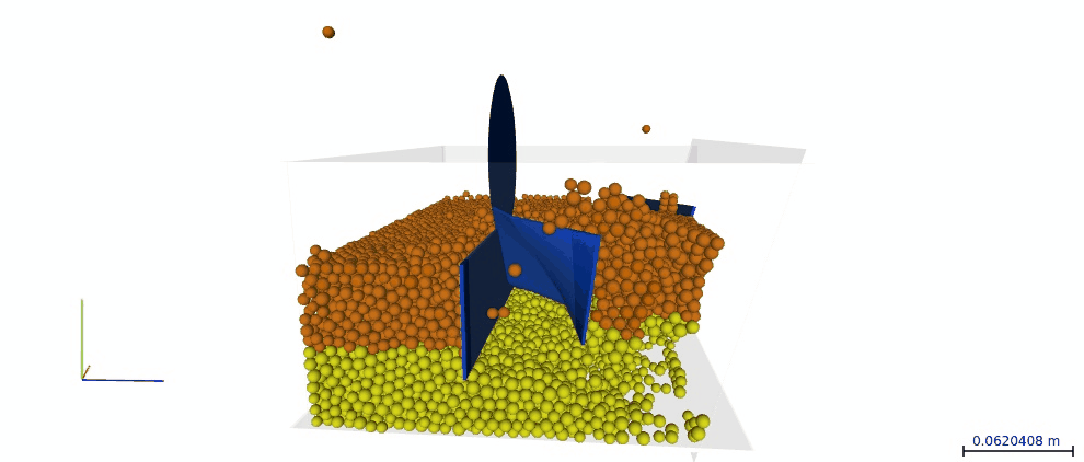 N.B. A simulation with the domain split in 2 layers with different beam properties, denoted by the colours.